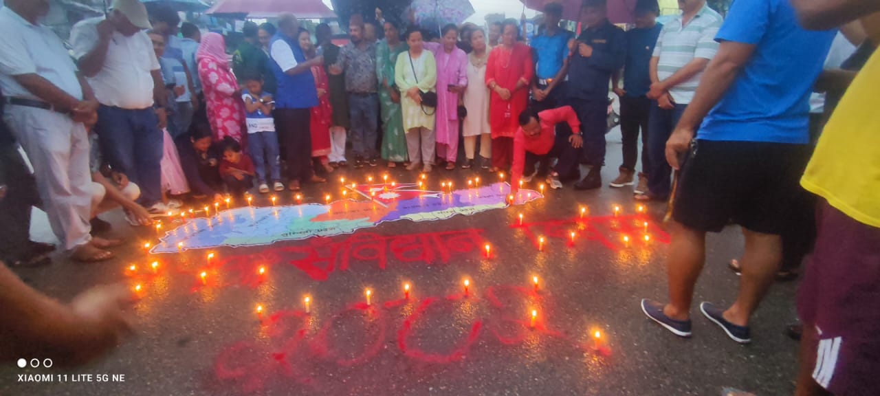 सिमसिम पानीलाई वेवास्ता गर्दै नगरपालिको आयोजना भएको संविधान दिवस समारोहलाई एमाले केन्द्रीय अनुशासन आयोगकी सदस्य दुर्गा दाहाल, प्रदेशसभा सदस्य द्वय भरत साख र शारादादेवी थापासहित नगर प्रमुख प्रह्लादकुमार क्षेत्रीले सम्बोधन गरेका थिए । दीप प्रज्वलनसहित सूरु भएको सो कार्यक्रममा मुलुकमा विषम परिस्थिति रहेको चर्चा गर्दै नेपाली जनताले पहिलो पटक आफैले बनाएको संविधानलाई नेपाली जनताले नै संरक्षण र संवद्र्धन गर्नु पर्ने वक्ताहरूले वताएका थिए ।