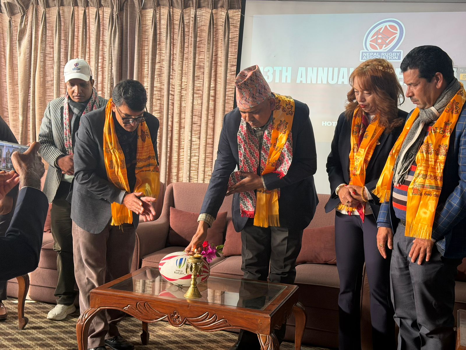 त्यस्तै उनले राखेपमा भर्खरै सदस्य नियुक्त भएका रग्बी सङ्घका सदस्य सन्त कुमार मेहता, अञ्जना श्रेष्ठ मास्के र मधेस प्रदेश खेलकुद विकास परिषद्का बोर्ड सदस्य निशेष कुमार श्रेष्ठलाई सम्मान गरे।