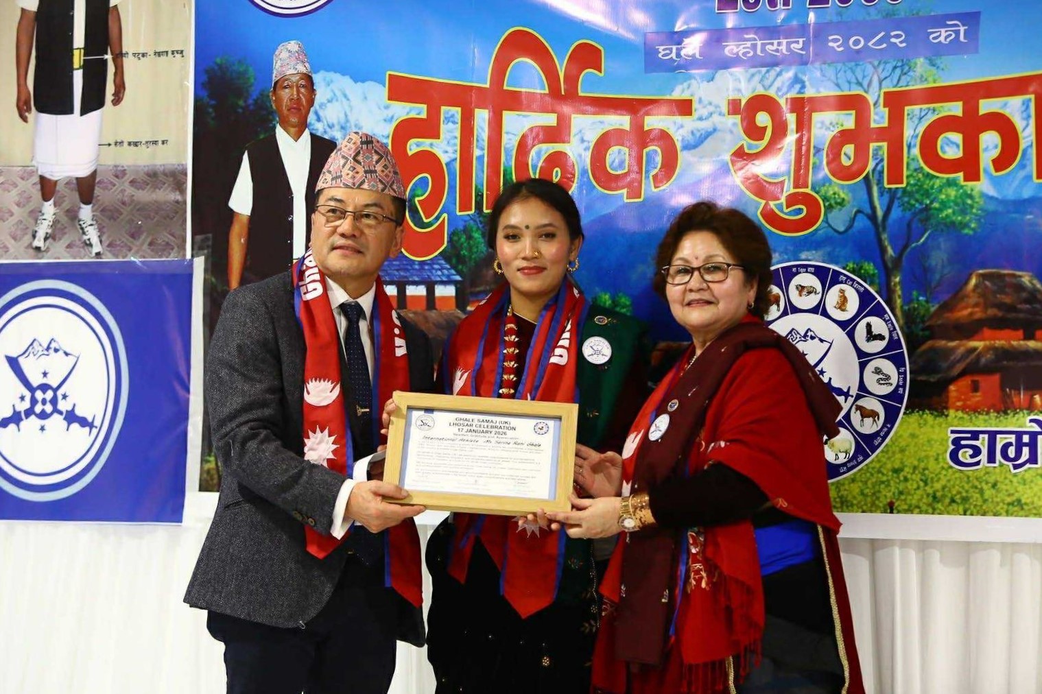सरिनालाई घले समाज युकेको नगदसहित सम्मान