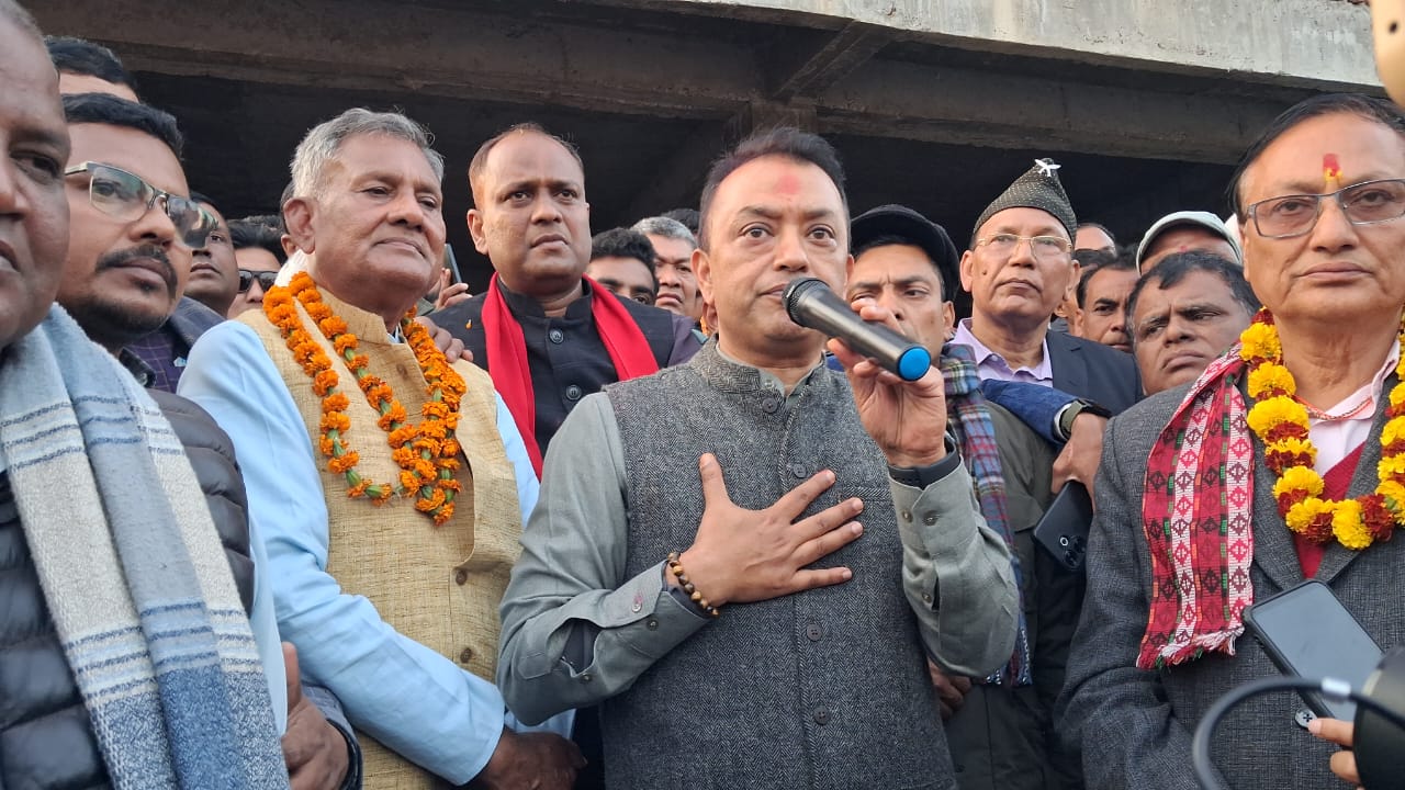 बर्दिवास १३ माघ । सर्लाही–४ बाट उम्मेदवारी दर्ता गराएका नेपाली कांग्रेसका सभापति गगन थापा पहिलो पटक आफ्नो निर्वाचन क्षेत्र आएका छन् । काठमाडौँबाट सिमरा विमानस्थल हुँदै सर्लाही आएका थापालाई ठुलो संख्यामा पार्टीका समर्थक तथा कार्यकर्ताले स्वागत गरे ।