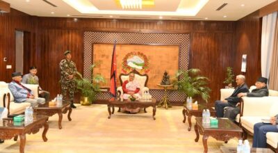 काठमाडौं:प्रधानमन्त्री सुशीला कार्की र प्रमुख ३ दलका शीर्ष नेताबीचको वार्ता बालुवाटारमा सुरु भएको छ। प्रधानमन्त्री